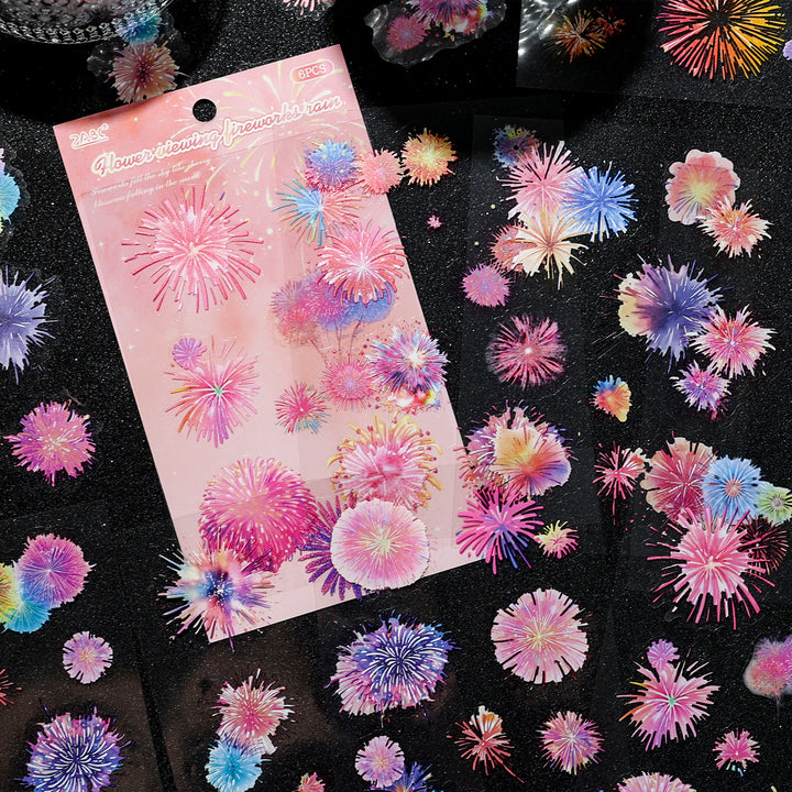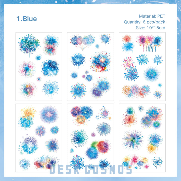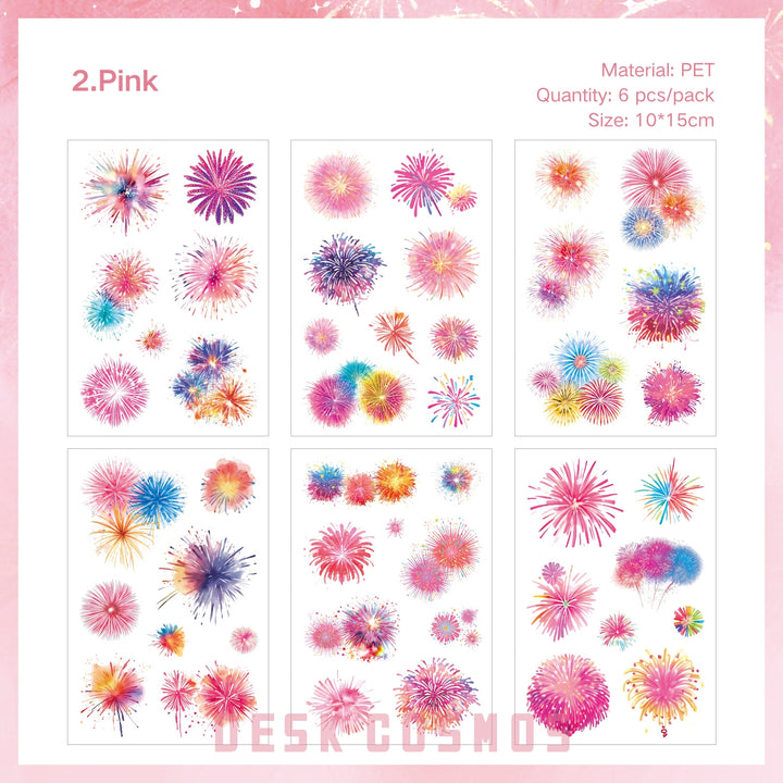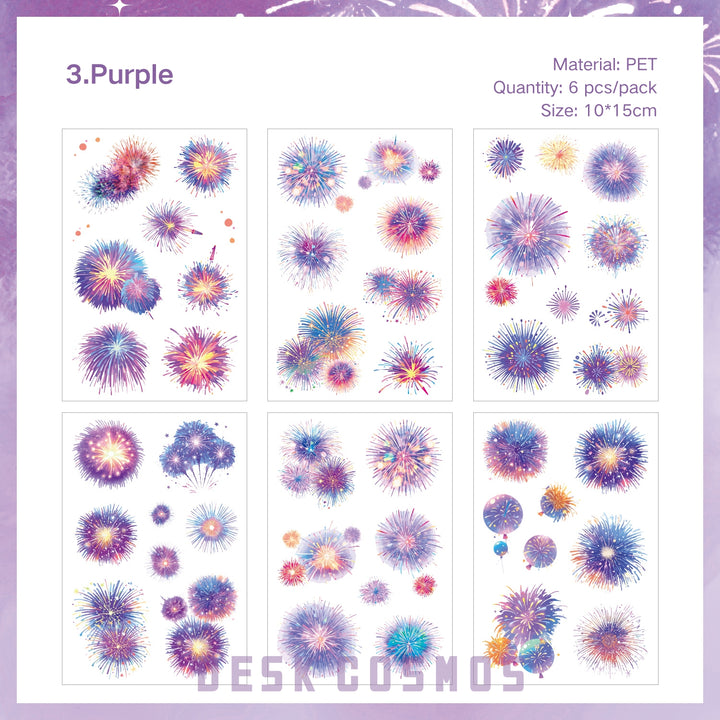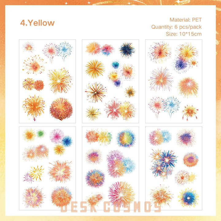 These Fireworks and Flowing Light PET Stickers feature vibrant fireworks and dynamic light elements, making them perfect for scrapbook, journal decoration, scenic crafting, and card making.