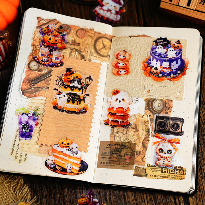 These Halloween and Christmas Decorative PET Stickers for Journals feature festive Halloween and Christmas elements, making them perfect for scrapbook decoration, journal design, scene creation, and card making.