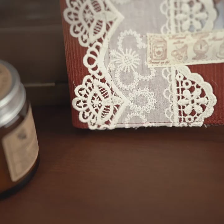 This Handmade Lace Vintage Bunny Journal features soft lace details, a charming retro bunny motif, and a customizable nameplate—perfect for journaling, scrapbooking, decorative layouts, and creative writing