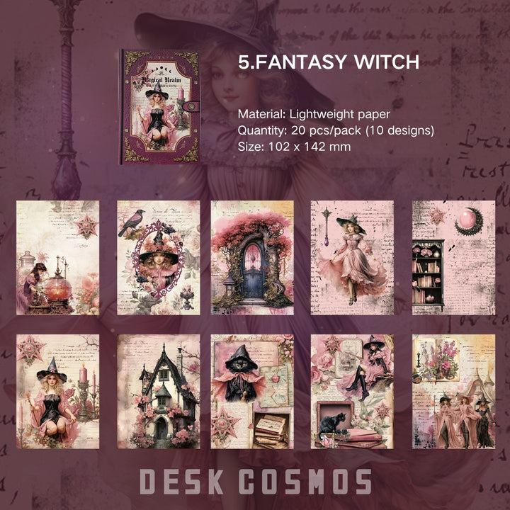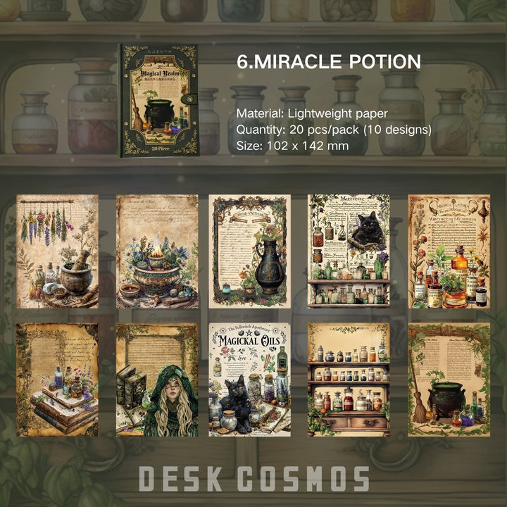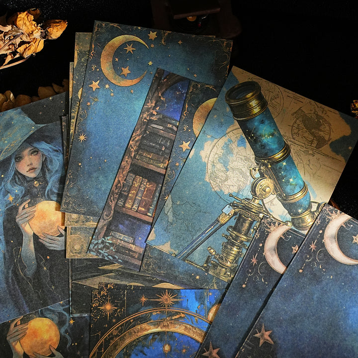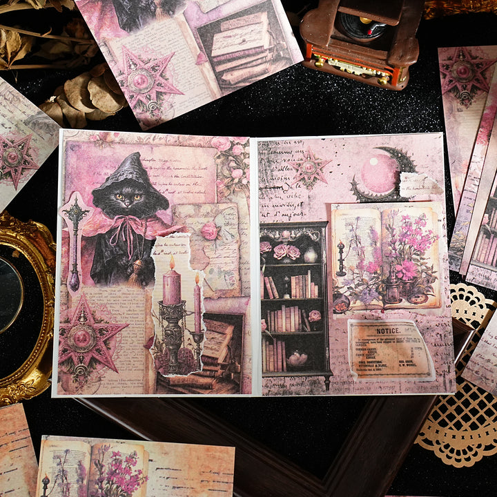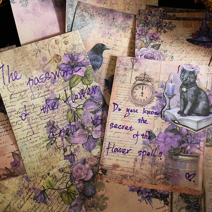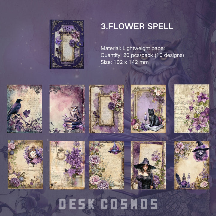 This Magic Scrapbook Paper – Crow, Witch, Potion, Spell, Owl features mystical elements like witches, crows, owls, potions, and spells, making it perfect for scrapbooking, journaling, scene creation, and card making.