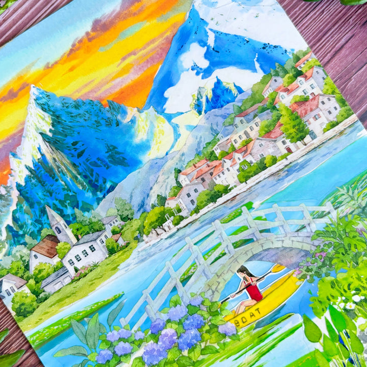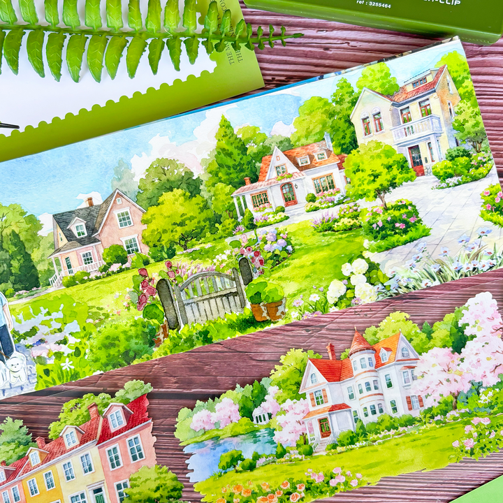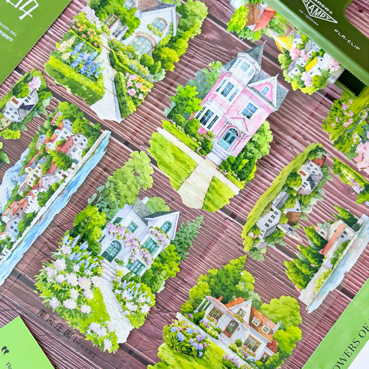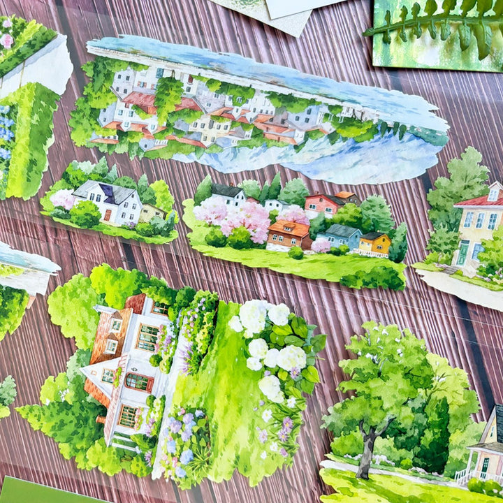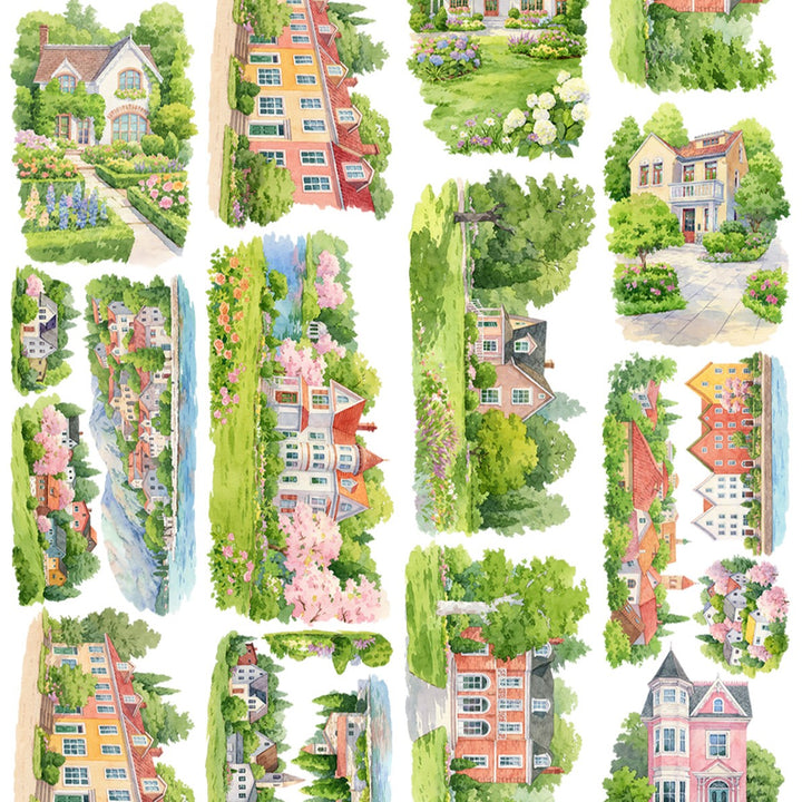 Manor Stroll Garden Scenery PET Tape features peaceful manor-path elements, making it perfect for scrapbook creations, journal decorating, scenery building, and card making.