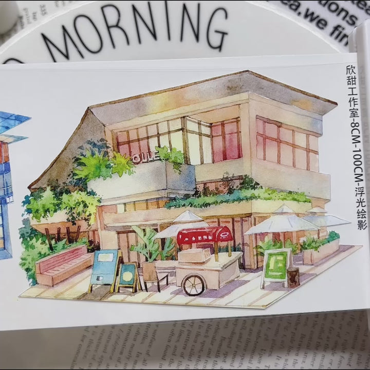This is a tape featuring a bustling modern city night theme. The main elements include buildings in the CBD illuminated by neon lights, creating a highly aesthetic urban nightscape. It is perfect for use in night-themed collage journaling and creative scrapbook layouts.