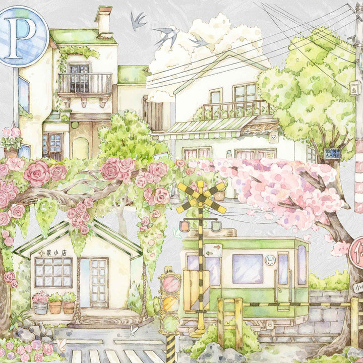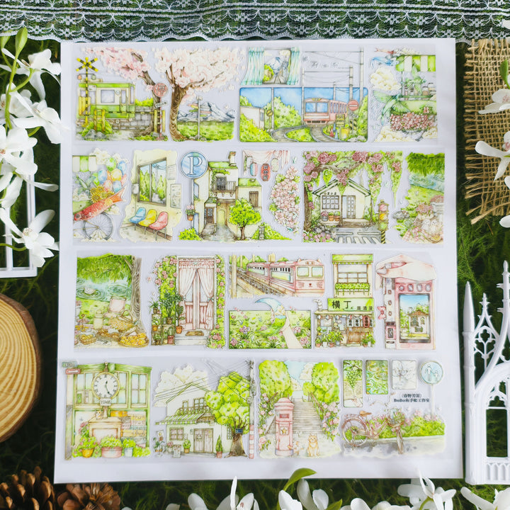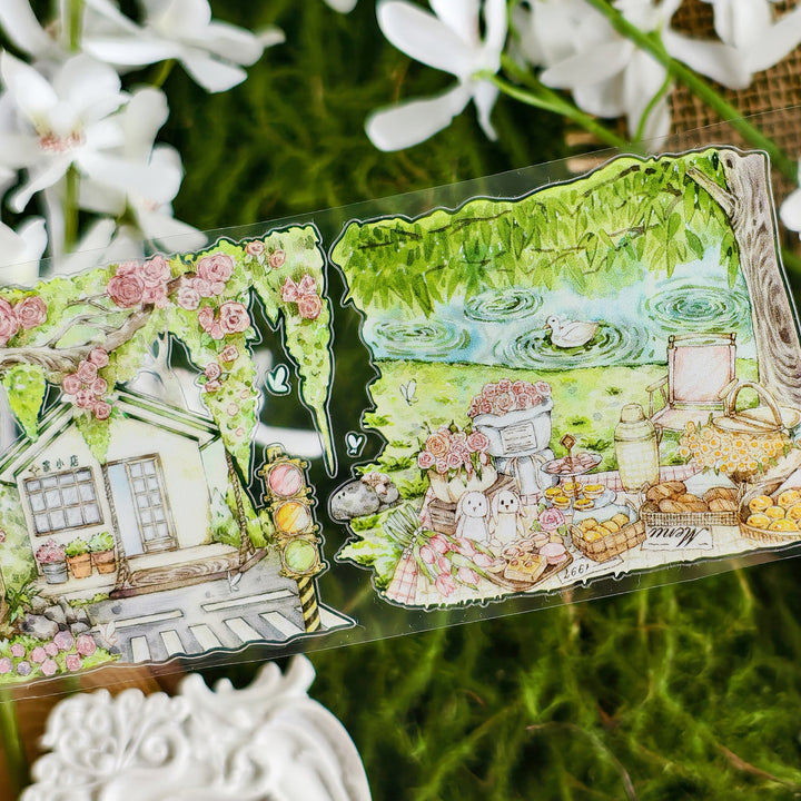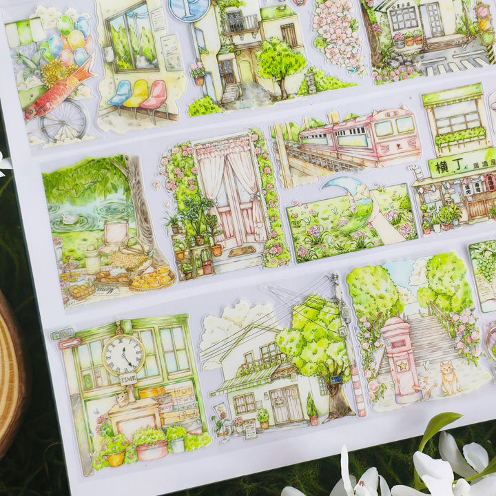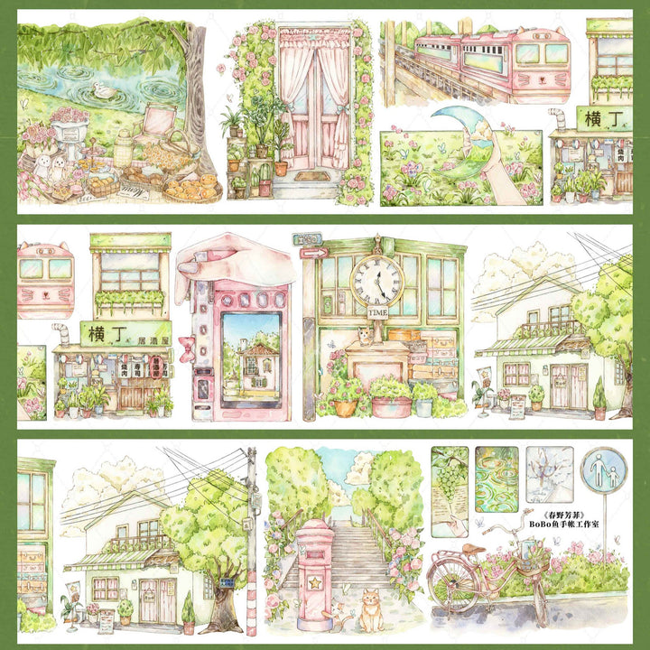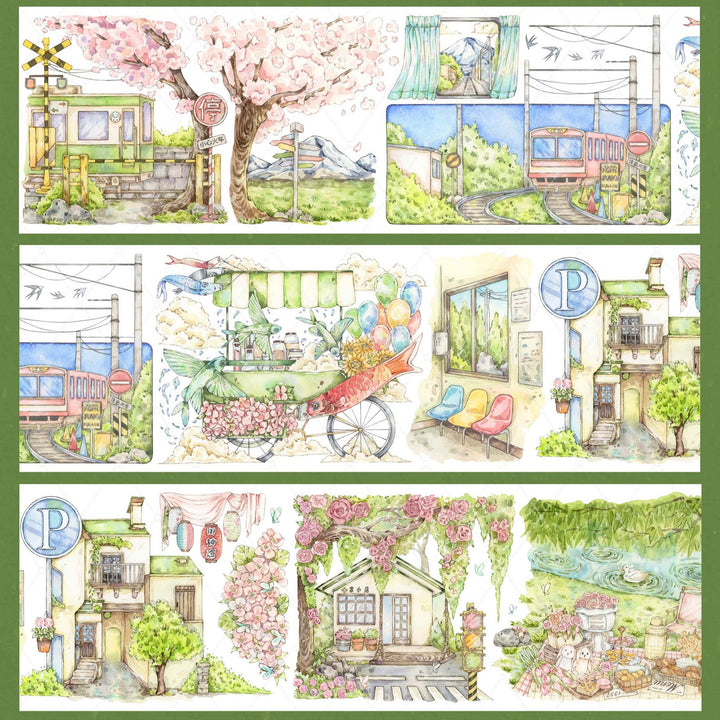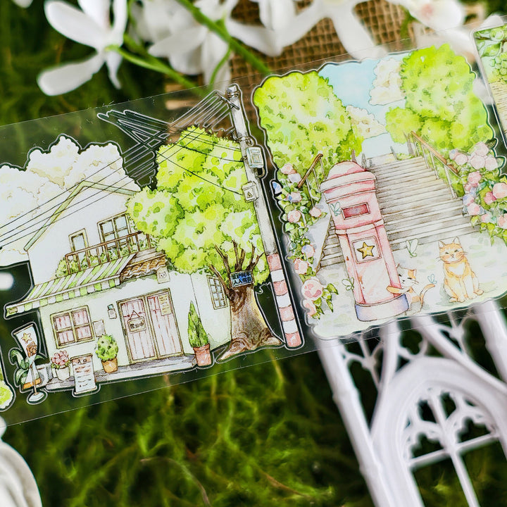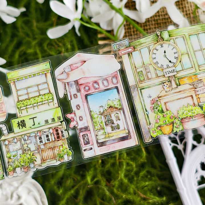 Relaxing Japanese Spring Town Die-cut PET Tape