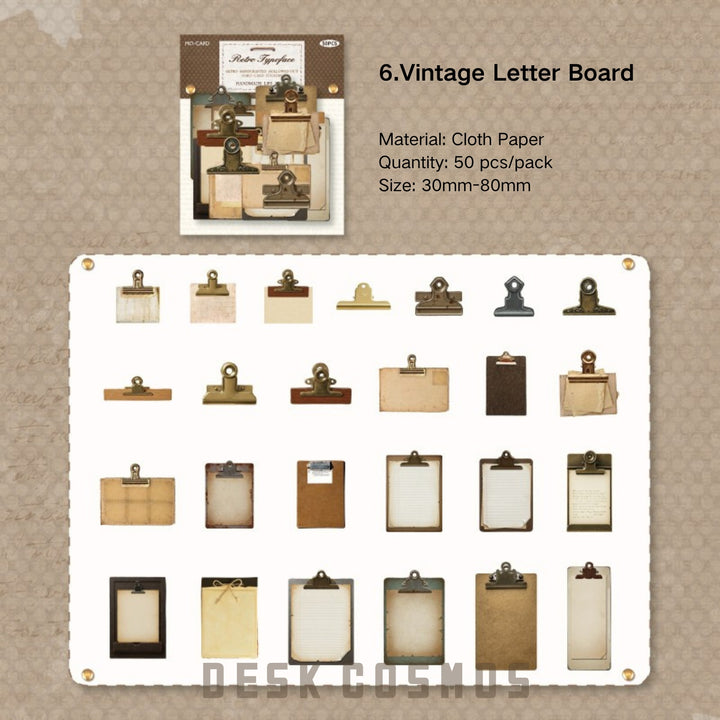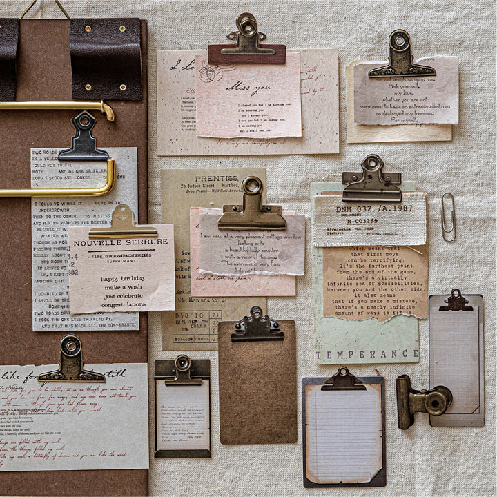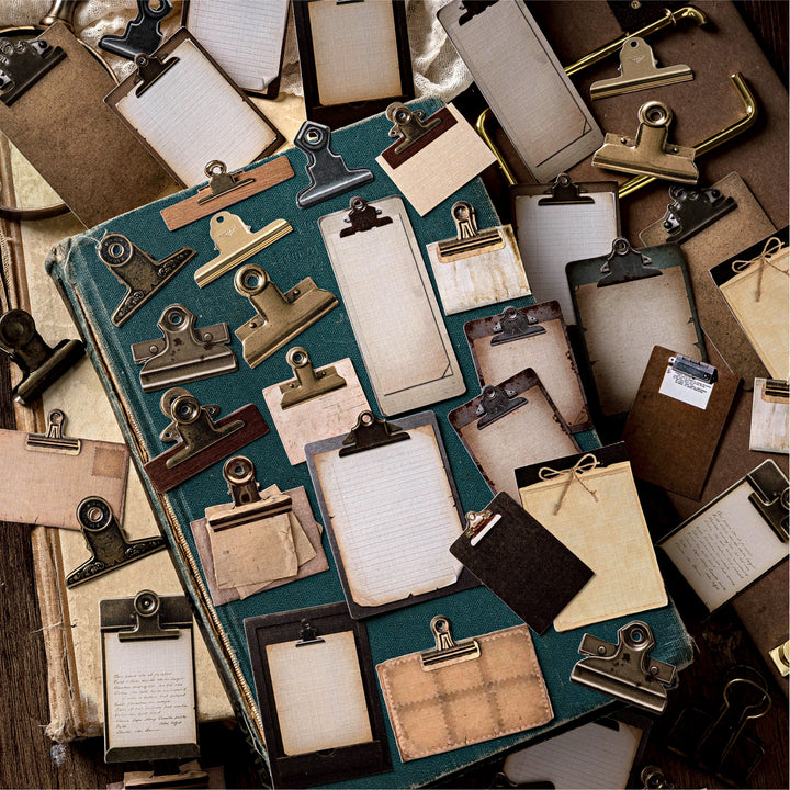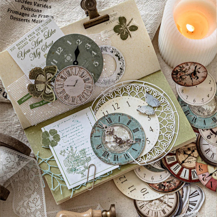 These Vintage Ephemera Stickers – Labels, Clocks, Buttons, Letters, Wood Boards feature a variety of vintage-inspired elements, making them perfect for scrapbook decoration, journal design, scene creation, and card making.